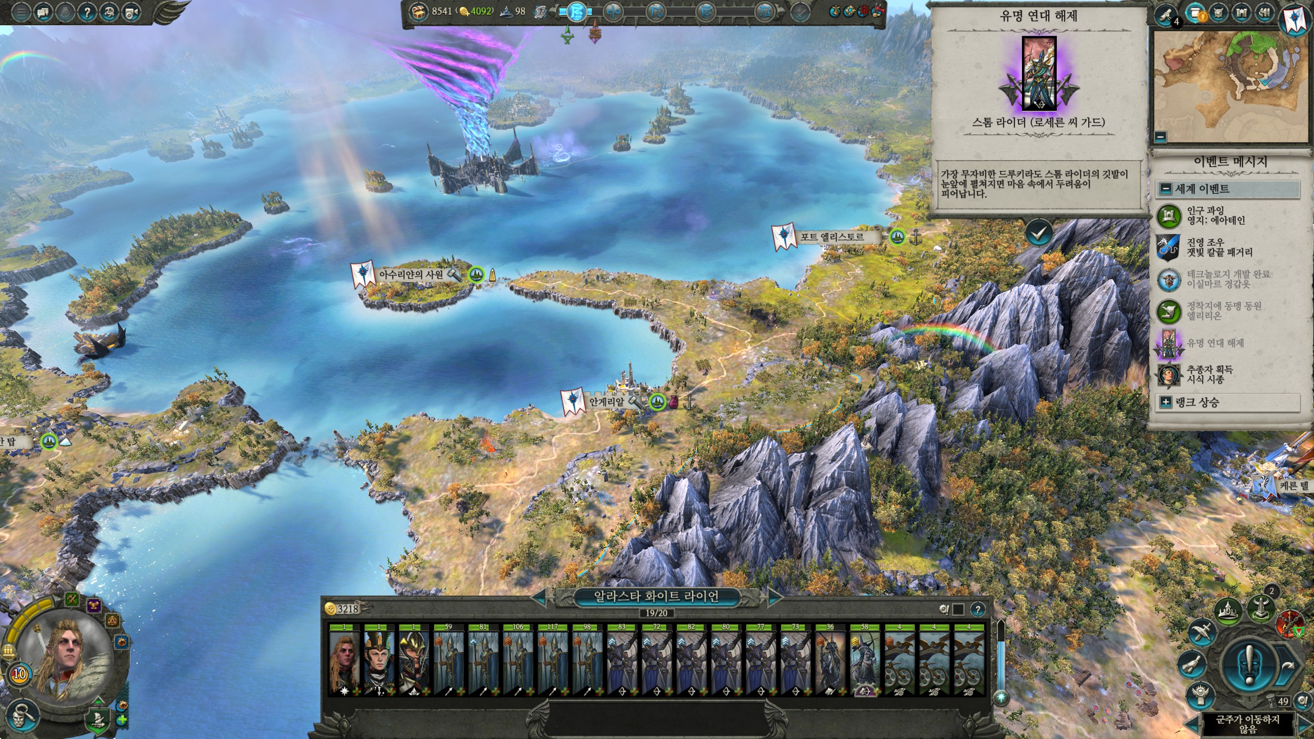 지금은 하이엘프를 플레이해보고 있는데 여왕과 노파DLC를 구매하기전에 플레이 해본 적은 없어서 상대적으로 뽕은 덜 차오르는 것 같다. 하이엘프라는 팩션 자체가 초보자용 팩션답게 어느 한쪽으로 특화되기 보다는 평범함이 '특징'인 팩션이기 때문이다. 워낙 특이한 장난감이 많은 워해머다 보니 평범함도 특징이 될 수 있어서 그런지 생각한 것보다 훨씬 더 즐겁게 플레이 하고있다. 전판에서는 개틀링 쏴대고 핵폭탄 날려대다가 정상적으로 모루 세워놓고 뒤에서 궁병 쏘고 충격기병으로 달려들고 영웅과 괴수가 한바탕 난동 부리는 전쟁을 하니 또 '색다른' 재미가 느껴진다.
