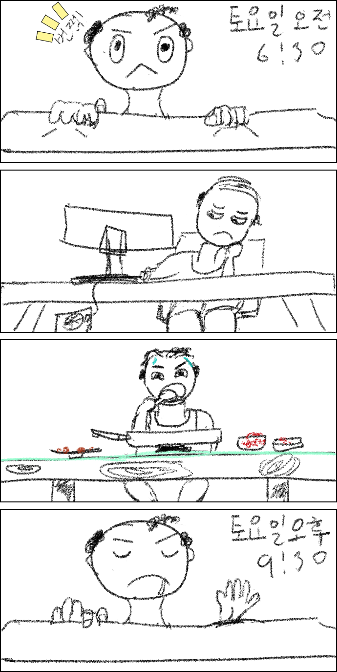 요즘에는 짬이 나면 아무 생각없이 그림을 끄적여 본다. 로딩도 없고 결과도 바로 확인할 수 있다. 주말의 흥분도 잠시, 결국 게임 목록만 스크롤하다 잠들게 된다. 아니 애초에 금요일 저녁에 게임을 안하고 넘어간 순간 이미 글러먹었다는 생각이 머리를 스친다.