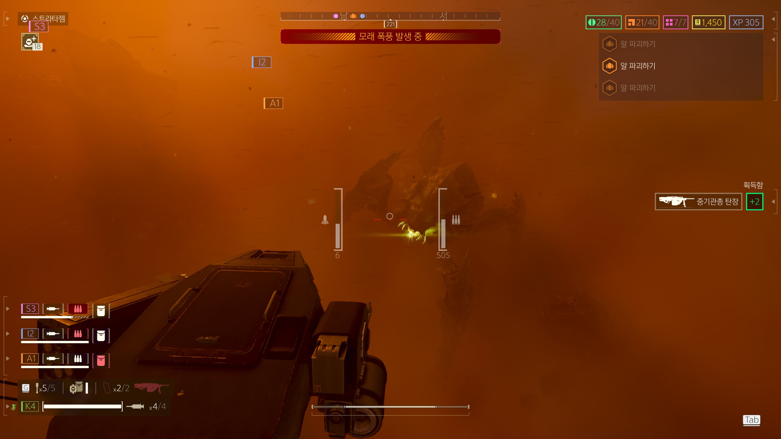 그런데 나의 원활한 파밍을 방해하는 녀석들이 있다. 처음에는 아무렇게나 패줘도 픽픽 잘만 죽어나갔는데 점점 더 힘들어 지고 수도 많아진다. 맞다 이게임 PVE다. 미션을 깨려면 적과 조우할 수밖에 없다. 갑자기 헬다이버로서의 도전 정신이 고개를 들었다.
