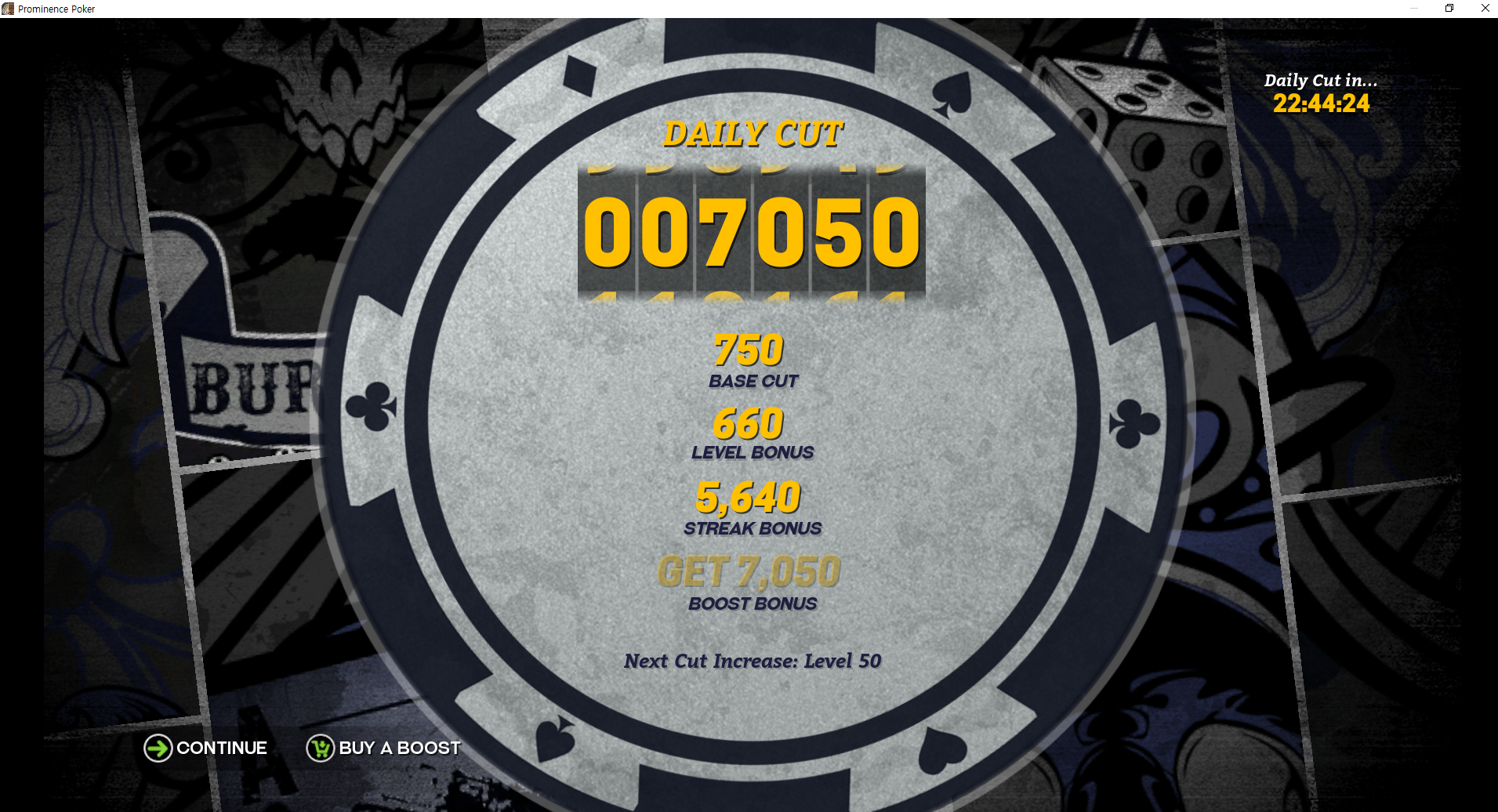 자신의 레벨에 따라, 연속 접속 일수에 따라 칩을 준다. 기간제 아이템인 부스터는 현질을 해야만 한다. 어차피 우리는 플레이를 통해 칩을 딸 것이기 때문에 과금유도는 없다고 생각하면 된다.