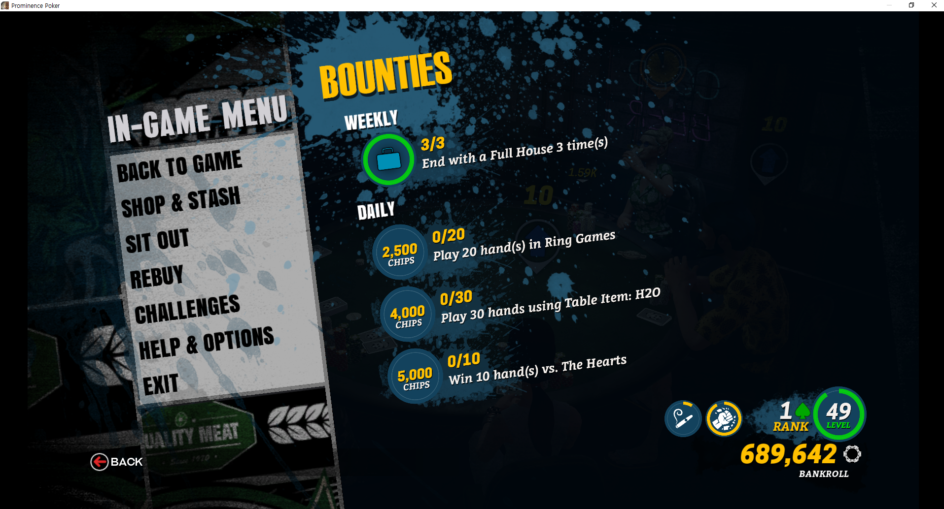 자신이 바이인이 5만칩인 방에 들어가면 모두 5만칩을 가지고 시작한다. 아무리 뱅크롤에 100만칩이 있어도 게임 시작 때 100만칩을 몽땅 들고 올 수 없다.